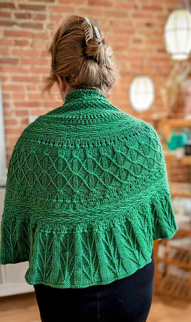 Inspired by Treebeard from Tolkien’s The Two Towers and Return of the King, this shawl is a half-pie, worsted weight, overall textured shawl.